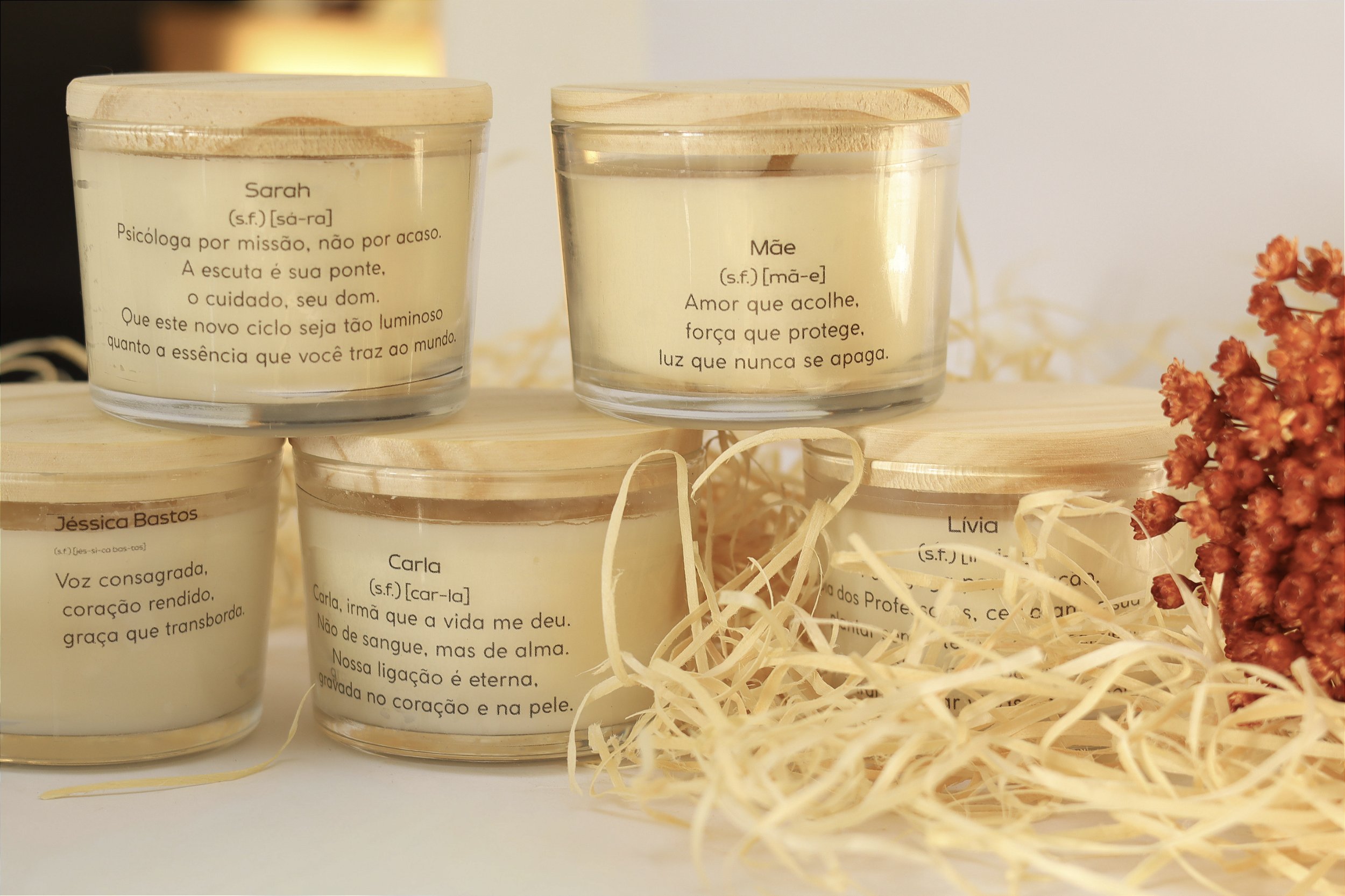 Cada vela personalizada é uma forma de transformar um simples objeto em memória, presença e afeto.